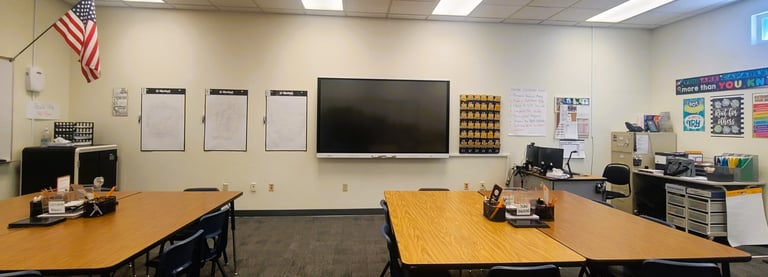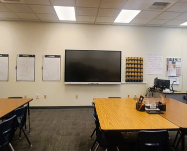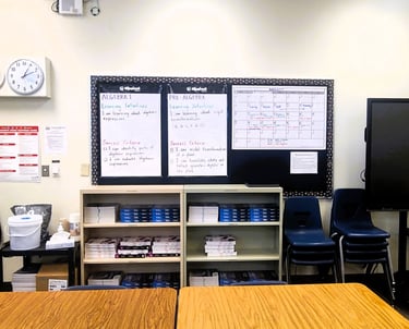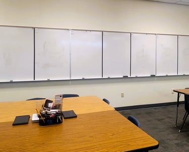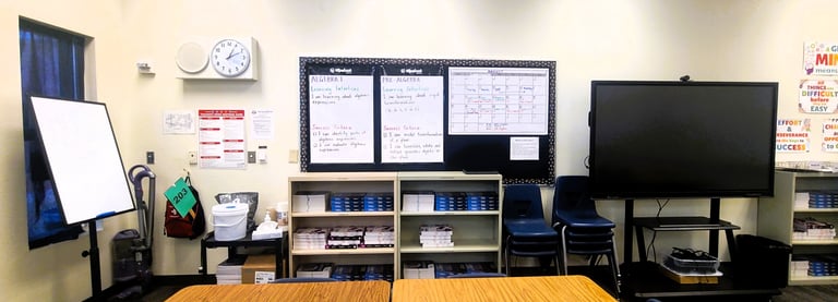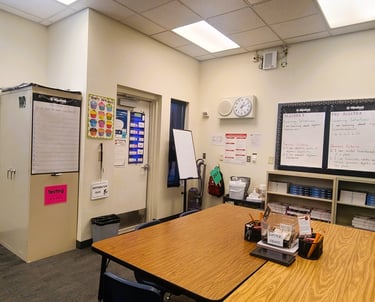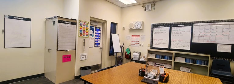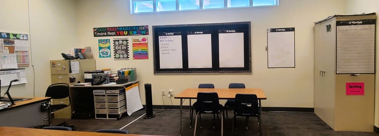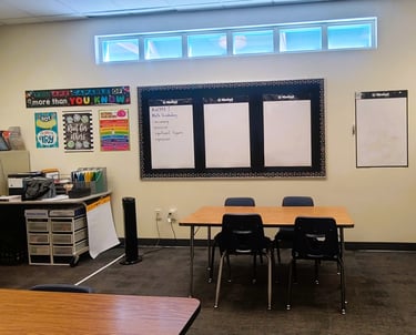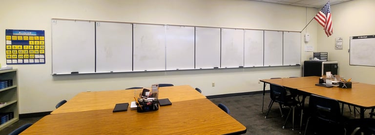Our classroom has vertical, non-permanent surfaces to foster collaboration and taking risks. Making mistakes are learning opportunities!